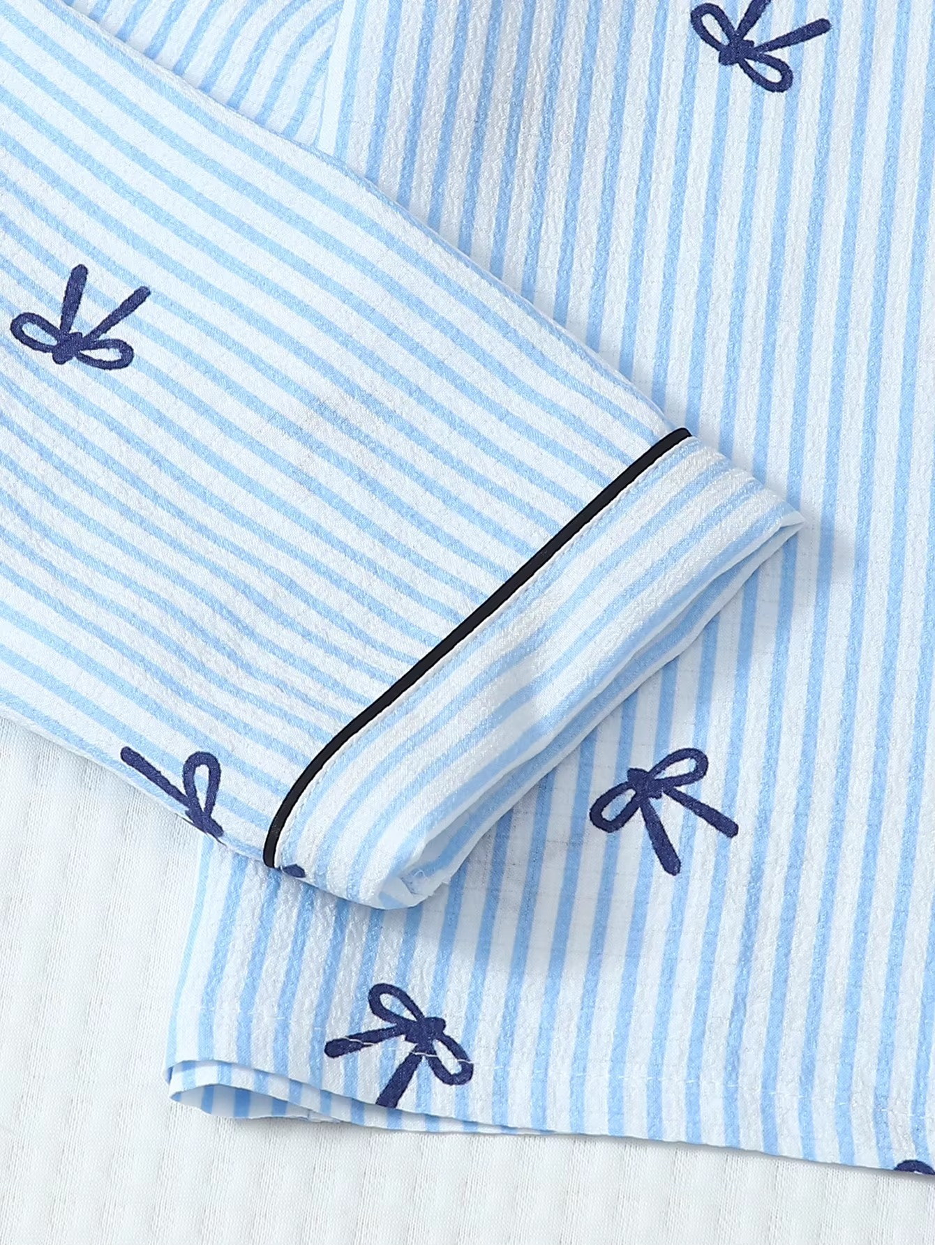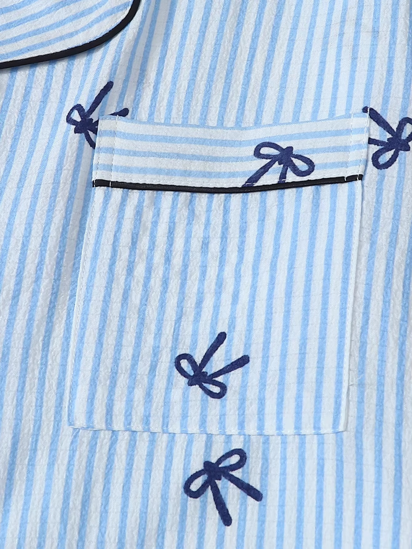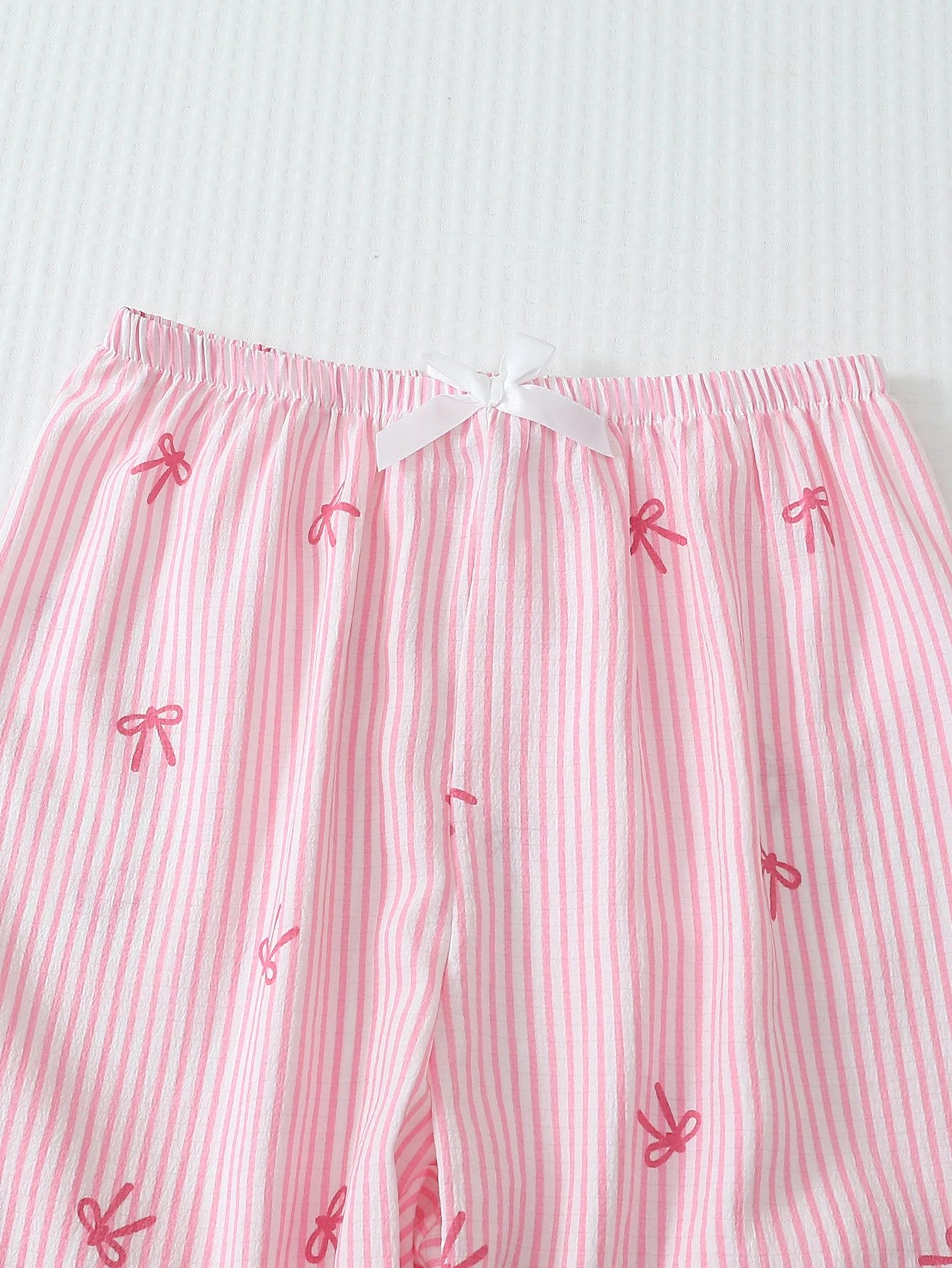 With its elegant striped pattern and delicate bow print, this pajama set gives you a cute, feminine look you’ll love wearing — even outside the bedroom.